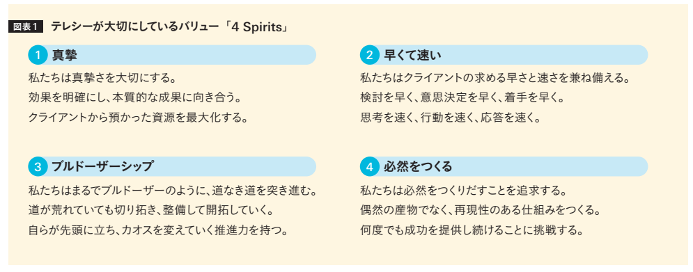 図表1 テレシーが大切にしているバリュー「4 Spirits」